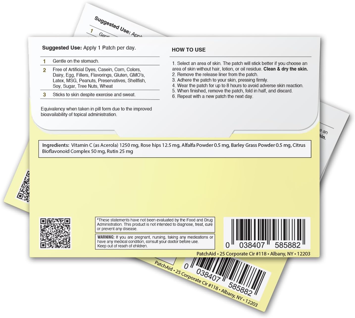 As the #1 selling topical patch, you can count on PatchAid to deliver. Simply stick a PatchAid topical patch daily to an area with little or no hair, i.e. shoulder, back, or hip. PatchAid patches are easy to use, comfortable, and can be worn during sleep. Product Dimensions : 5.5 x 0.2 x 4.2 inches; 0.8 ounces Date First Available : November 16, 2024 PatchAid patches are Latex, Lactose, Gluten, and Sugar-Free Free from harmful ingredients Multiple PatchAid patches can be worn at a time For best results, it is recommended to wear PatchAid patches for 8 hours. PatchAid patches are functional and easy to use |